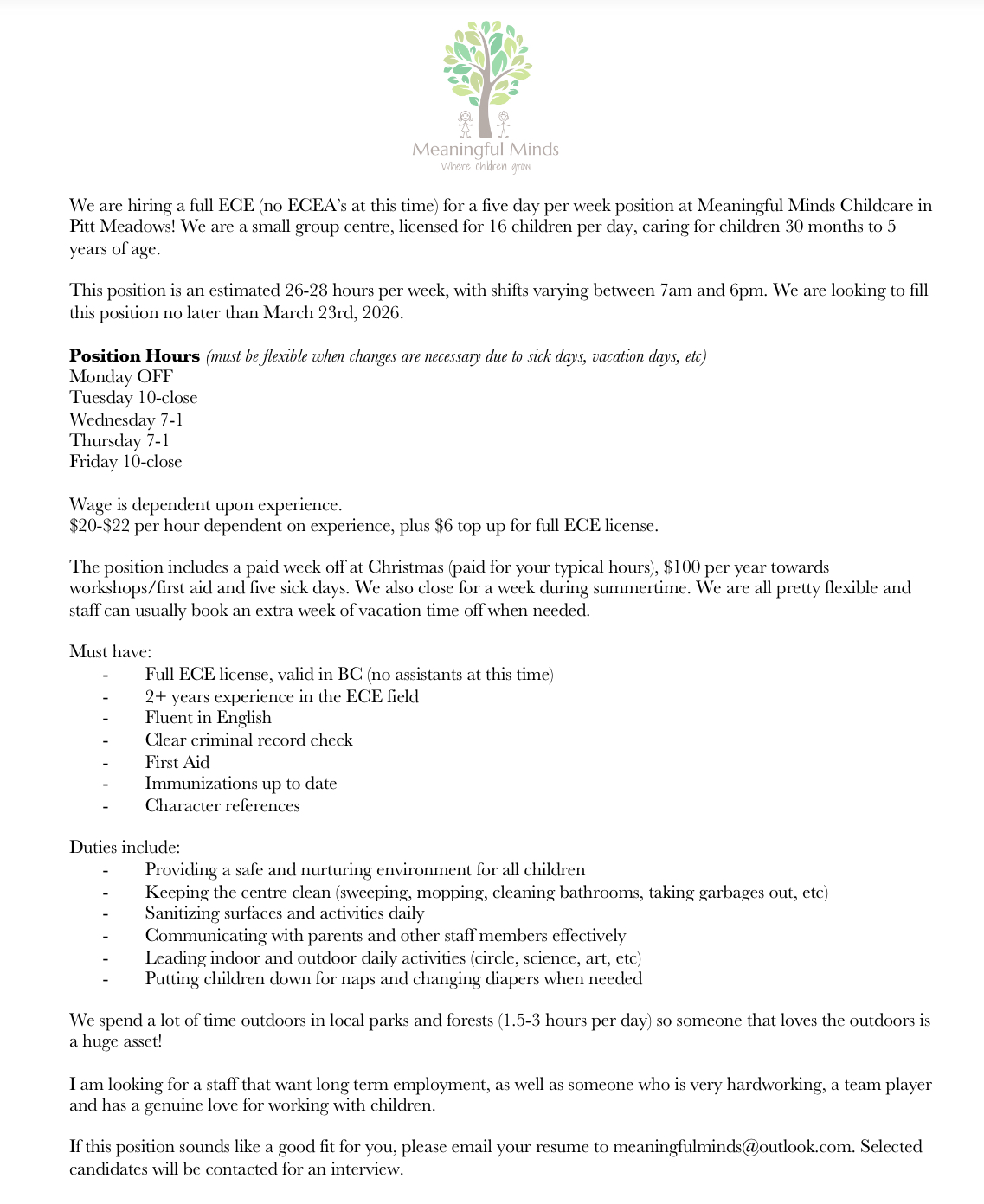 Fulltime ECE – Meaningful Minds